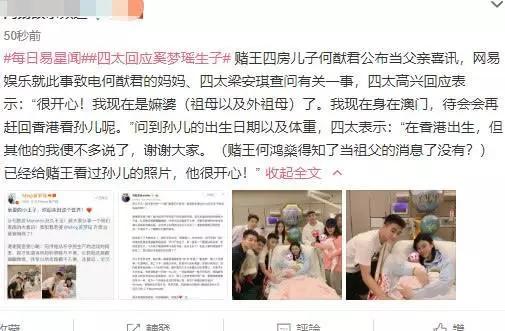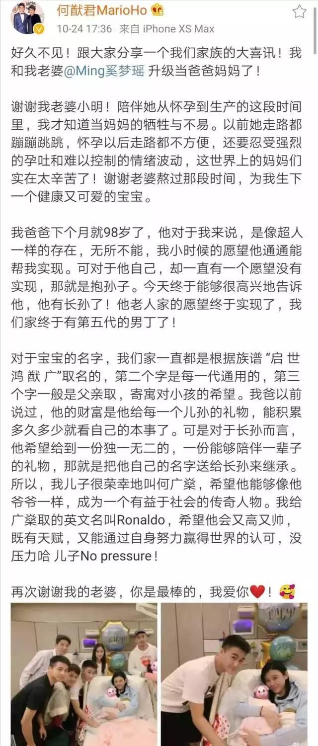何猷君也高调谈论此事,足见其兴奋,而赌王何鸿燊亲自给孙子起名,意义非凡。