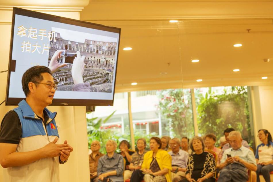 最后,由中国文化旅游摄影协会理事、《大众摄影》杂志社副社长、执行主编郑壬杰现场向老人们讲解如何用自己的手机拍摄属于自己的生活大片。老人们兴趣浓厚,讲座结束后纷纷拿出自己手机请老师现场指导,郑壬杰老师耐心地教老人如何美化照片,并为大家安装修图软件。老人们也对此次活动提出了殷切期盼,希望协会能多来开展摄影活动。