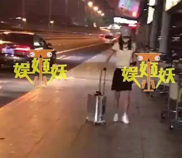 王丽坤换了一件白色红领T恤和黑色短裙,