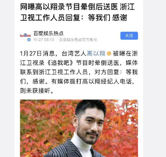 其实《追我吧》节目收视率还算是不错,节目一直主打高强度的游戏对抗,现在究竟是高以翔自己的问题,还是节目的强度过高引发了嘉宾的不适,依旧还在确认当中。