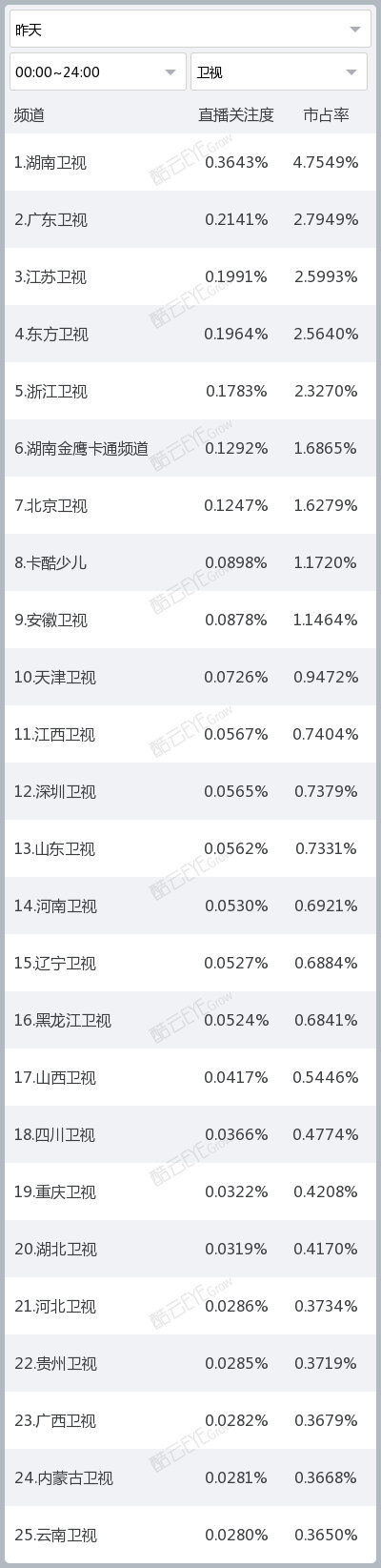 原标题:【每日关注度】《快乐大本营》综艺关注