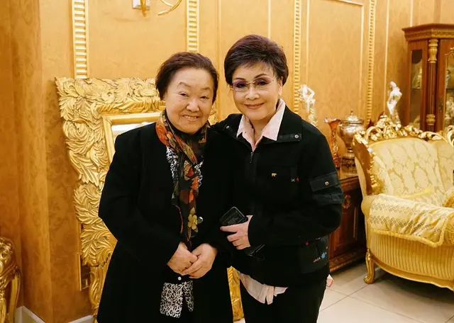 粉色的上衣下半身搭配了一条黑色的裙子,就很有那种民国的感觉,看起来还挺复古的,非常的优雅。虽然说她现在年纪大了,但是看看她年轻时候的照片也是非常的优秀的呀!