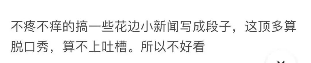 有网友担心《吐槽大会》名气越大,可能就会变得小心翼翼起来,变得隔靴搔痒,失去一开始的辛辣和原生态。