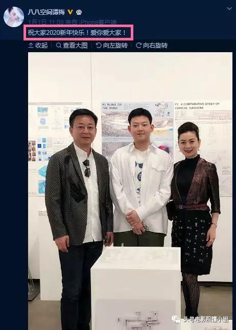 朱军的舞蹈家妻子谭梅,则在网上更高调一点,她晒出了三张照片,还写道:“祝大家2020新年快乐!爱你爱大家。”