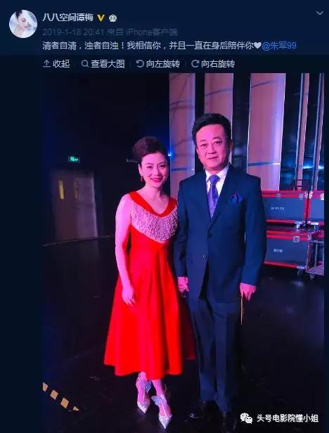 去年1月,谭梅曾经晒出一张自己和朱军的合影,力挺老公:“清者自清,浊者自浊!我相信你,并且一直到身后陪伴你。”并且@了朱军。
