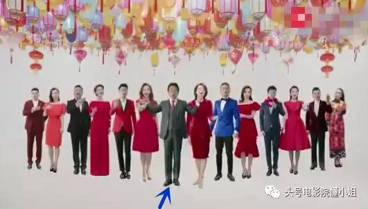 画面中,朱军身穿西装,系着枚红色的领带,做出拱手礼,唱到:祝贺大家新年好。