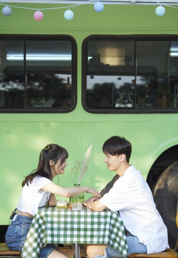 背景主题以绿色为主,绿色的车漆、绿格子桌布以及各种绿植装饰,到处洋溢着青春的活力。也不知道是无心搭配还是有意为之,用上了较为敏感的“绿色”。