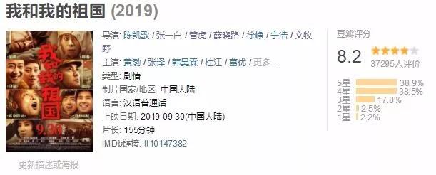 原标题:豆瓣冲上8.2分,《我和我的祖国》首日票房夺