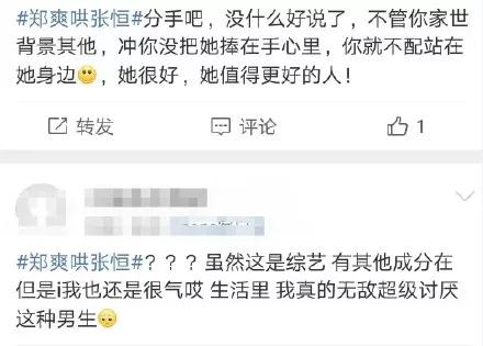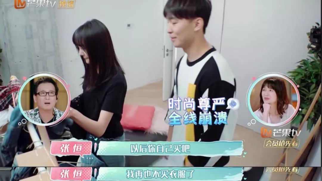 在第二期的时候,张恒因为冷暴力上了热搜,起因是张恒给郑爽买了二十多件衣服,但是郑爽都不满意,吐槽了几句后,张恒就对郑爽说:“以后你自己买吧,我再也不买衣服了”