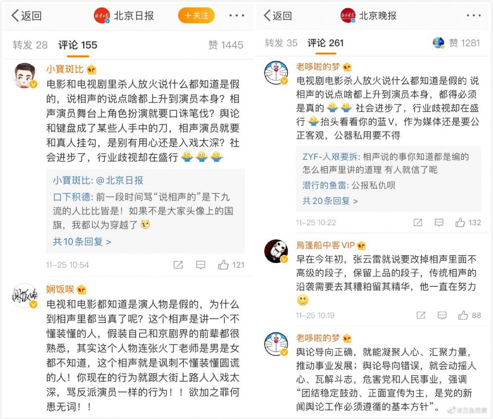 之前,控评粉在北京日报、北京晚报、新京报、北京头条痛批张云雷的微博后面疯狂控评,让洗白张云雷的评论占据着评论的前列。