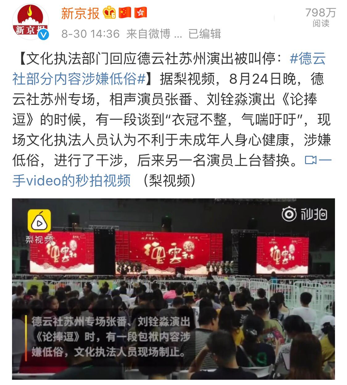 8月24日,张番刘铨淼苏州站“涉嫌低俗表演”同样是这个道理。