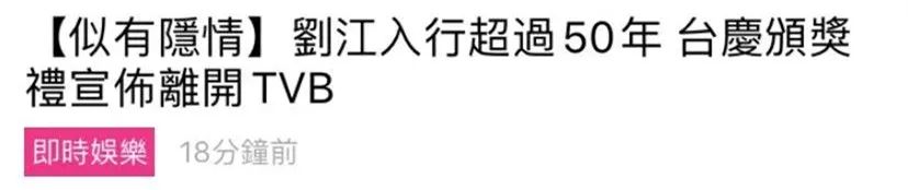 但另一位同样姓刘的资深绿叶刘江,却在台庆颁奖礼宣布约满离开TVB。