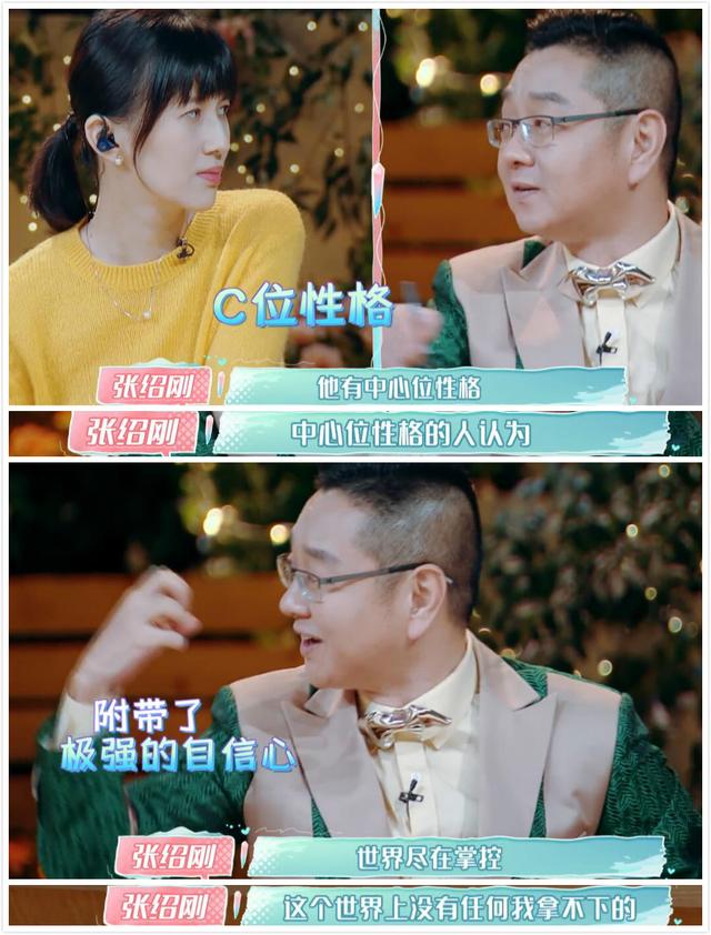 对于张恒的性格,张绍刚老师是这么点评的,他有中心位性格,胆特别肥,觉得一切都在自己的掌握当中,没有什么是自己拿不下的,所以才敢去追求郑爽,这话说得一点都没错,但是也是因为这样的性格,他特别在乎面子,也有一些自恋,可能会让郑爽跟他相处的时候变得很累。