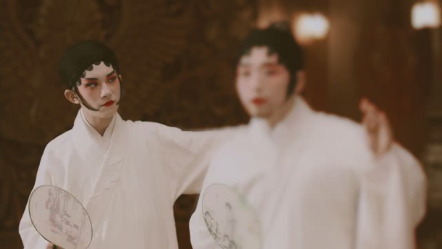 训练要求十分阳刚的阿易扮成戏曲当中的花旦,不仅仅化上精致的花旦妆容,姿态也要学着女娇娥一般娇俏。照片中易烊千玺穿着素白的服装,手中拿着团扇,认真的学习动作,举止之间完全褪去了男人的阳刚,姿态带有女性的柔美。
