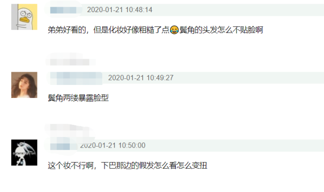 易烊千玺的花旦姿态有了,但化妆却显得有些不用心,网友纷纷表示:“弟弟好看的,但是化妆好像粗糙了点,鬓角的头发怎么不贴脸啊。”“这个妆不行啊,下巴那边的假发怎么看怎么变扭。”
