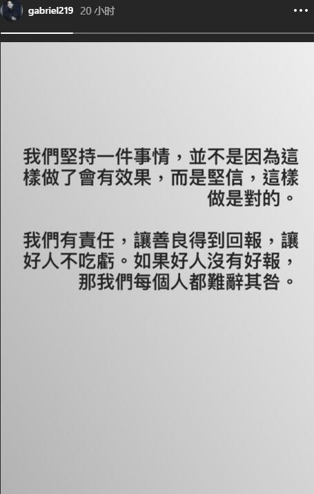 在此事愈演愈烈之后,高以翔的好友蓝钧天也是在个人社交账号上发声,他表示“我们坚持一件事情,并不是因为这件做会有效果,而是坚信这样做是对的,我们有责任让善良得到回报,让好人不吃亏,如果好友没有好报,那我们每个人都难辞其咎”。