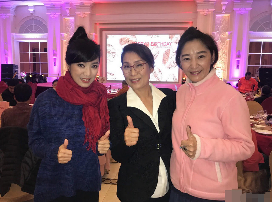在这组近照里,刚刚下舞台的汪明荃和罗家英夫妇满脸油彩,赵雅芝画着精致的妆容,而如果不是赵雅芝特别注明名字,很难把现在的杨盼盼与36年前,在《射雕英雄传》中痴恋“苗侨伟”的穆念慈划等号。