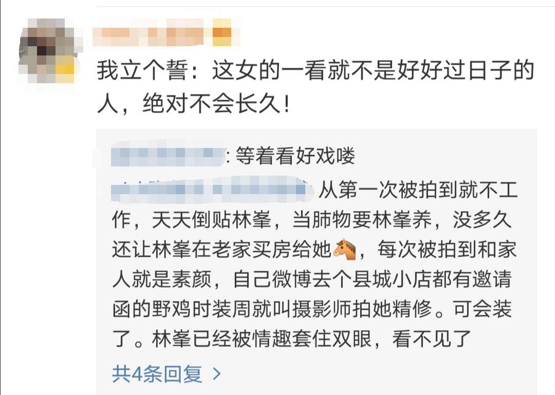 此消息一出,不少网友便炸开了锅。不仅因为男神结婚了而伤心,更多的则是对女方即张馨月表示不看好。纷纷表示“林峯啥都好,就是眼神不好”“帅是帅,就是瞎”。
