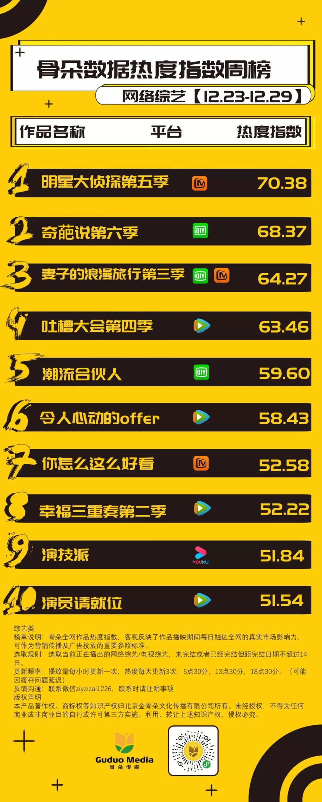 12月23日—12月29日,网络综艺周榜数据解读: