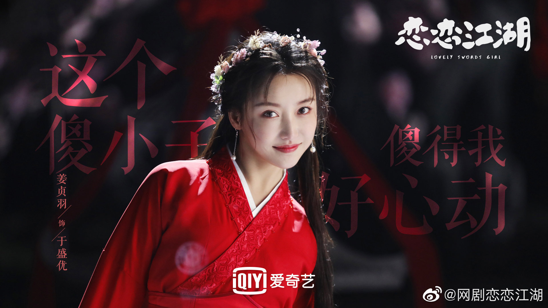 此外,姜贞羽在剧中还尝试了多种的古装造型,从干净利落的女扮男装到惹人怜爱的一席红衣造型,都是格外相衬的。
