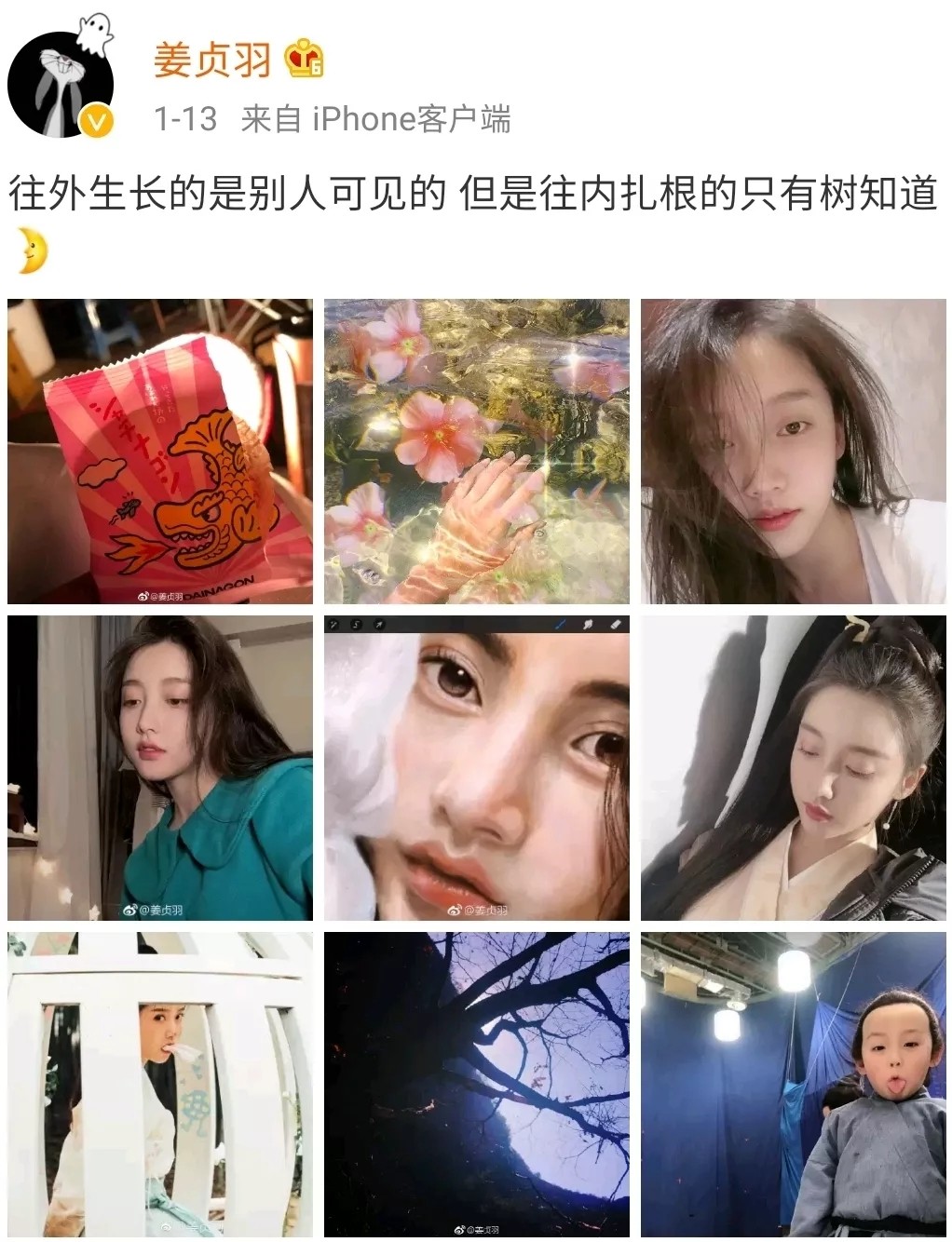 翻看姜贞羽的微博,你会感慨这是一个内心世界很丰富的姑娘。