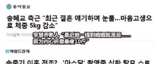 宋钟基和宋慧乔这段失败的婚姻也备受网友议论,曾经有多甜蜜,分手之后就有多狼狈。有消息透露,离婚对宋慧乔有很大打击,因为情绪不佳,她更是暴瘦了10斤,令人心痛不已。