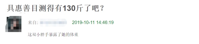 10月11日,有网友在某论坛上讨论具惠善的“小肉手”,从他发出的近照来看,具惠善皮肤白皙细致,五官精致,唯独脸蛋圆润,颜值没有瘦的时候那么惊为天人,但依旧楚楚动人、美丽大方。比脸蛋更为吸睛的就是她的小肉手,可爱之余却与她的神仙颜值不太搭边:“具惠善目测得有130斤了吧?这双小胖手暴露了她的体重。”