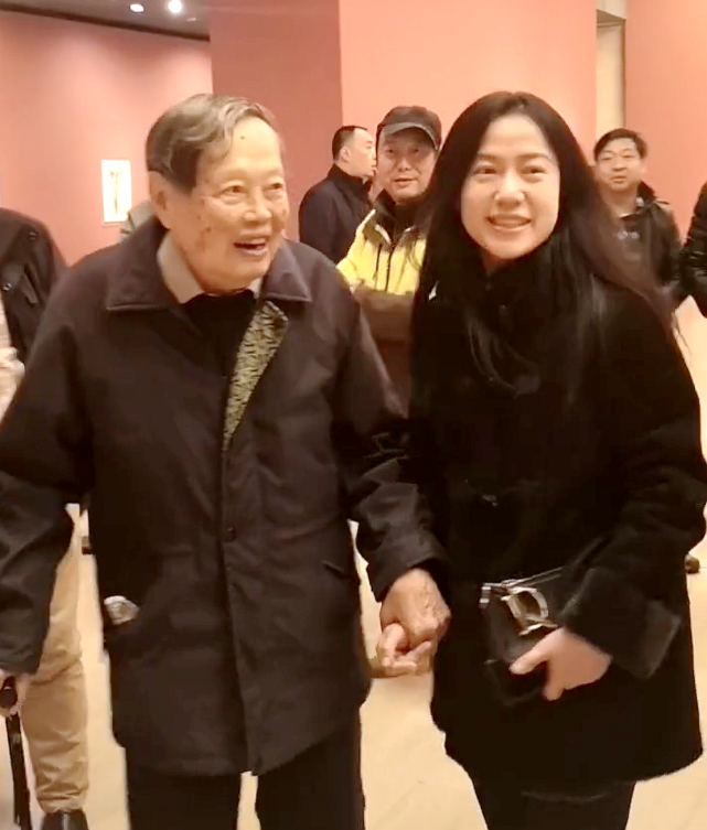 11月26日,杨振宁与太太翁帆现身中国美术馆,参观熊秉明艺术展!两人十指紧扣,在美术馆馆长吴为山的陪伴下,观看展品。97岁的杨教授与43岁的翁帆都精神奕奕,状态非常好,特别是杨教授,他说过要活到100岁以上,再陪伴太太几年,如今看来,他绝对可以做到。