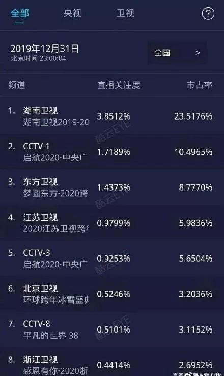 跨年前二台所放出的“三年领跑 跨年回归”,其实之前的那三年也只是因为二台前一天跨年罢了,提前一天一家独大,他们不领跑才怪 ..............