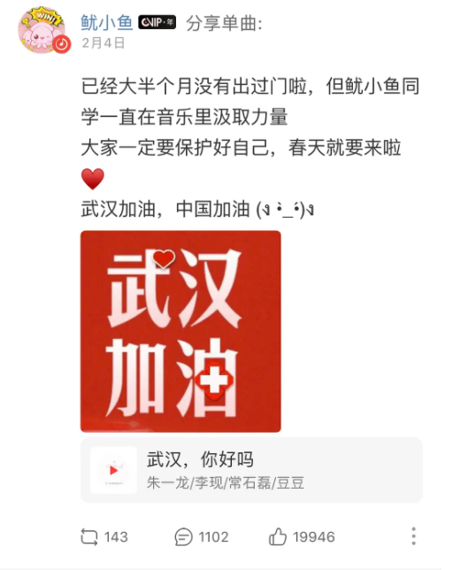 2月5日,韩商言又发布动态为武汉助力,字字句句戳人心房,令人感动不已。确认过眼神,是值得追的GUN神,还是那么暖心善良。