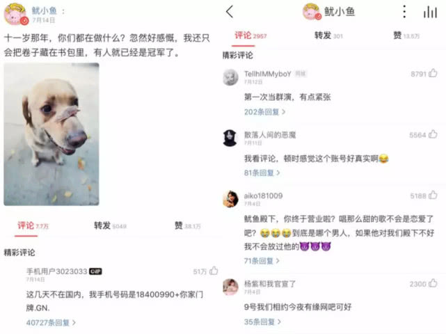 鱿小鱼账号的存在顿时让网友们生出许多真实感,似乎佟年是真实存在的。更令人惊喜的是,不仅佟年的账号存在,韩商言的账号也一直活跃在鱿小鱼的个人页面。剧中有一段剧情是韩商言出国了,而佟年不知道他的手机号,两人无法联系,韩商言便在佟年的账号发布的动态下留言:“这几天不在国内,我的手机号码是18400990+你的门牌号码,GN。”破次元壁的撒糖让网友们兴奋不已,剧中角色延伸到现实,让网友们在追剧的同时还多了一份参与感。
