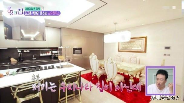 这栋位于首尔的豪宅,面积约185平方米,市值约2682万人民币,室内装潢非常豪华,家具电器都价值不菲。参加节目的嘉宾在看到金俊秀的家之后,都感到非常惊讶,忍不地连连赞叹起来。
