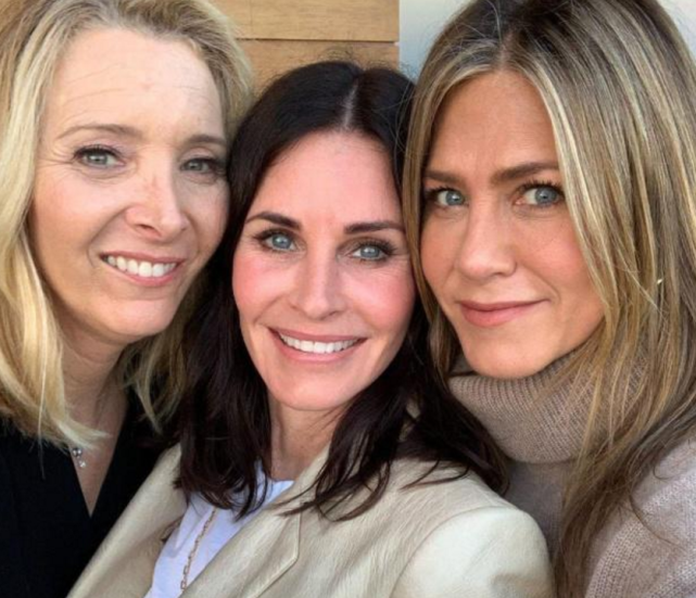 这些年《老友记》剧组没少打情怀牌,三位女主角,瑞秋、莫妮卡和菲比经常聚首,可以看出,十几年未见,大家都无法抗拒地球引力,面容不可避免地衰老。