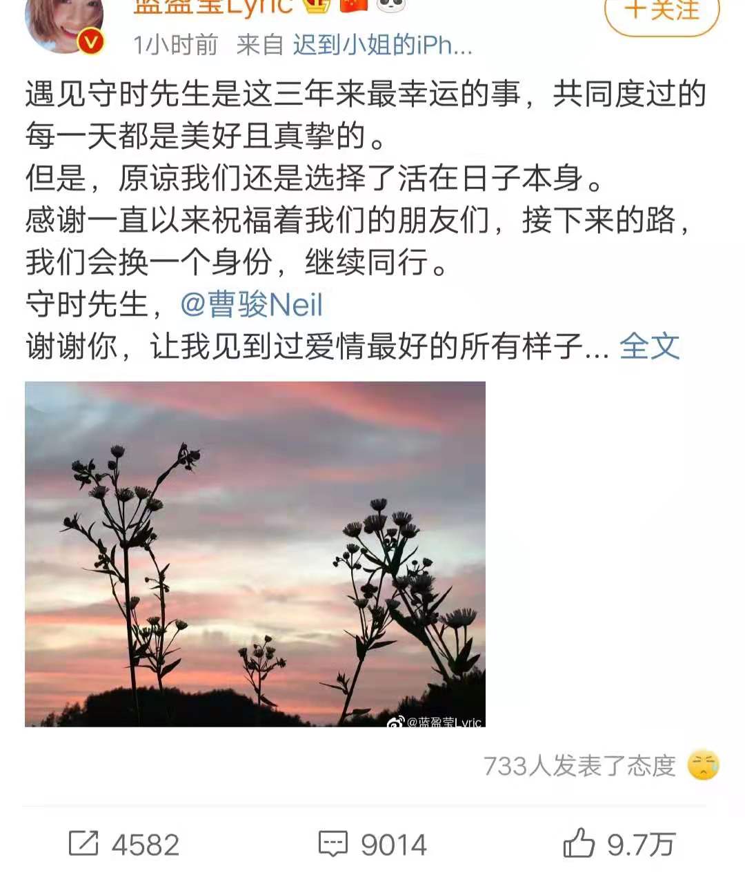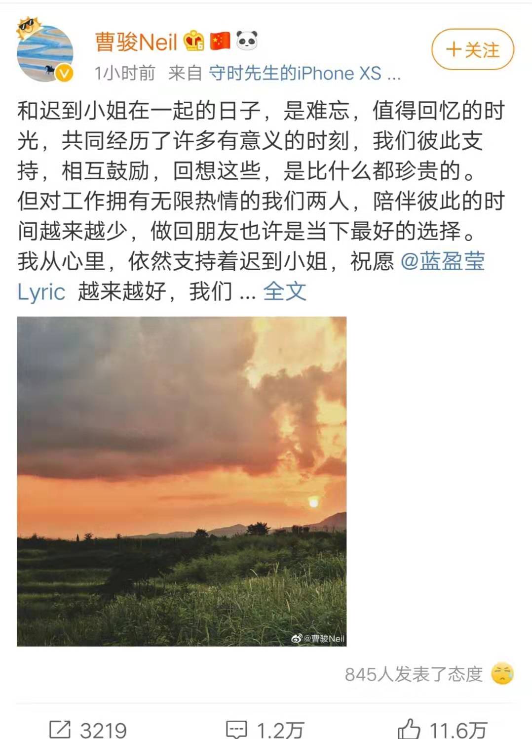 原标题:曹俊 蓝盈盈官宣分手,三年情断分手原因太过牵