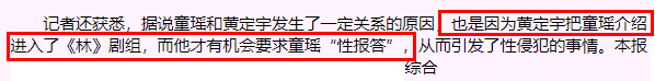 当时这件事也有中戏学生出来发帖说,童瑶确实是跟系主任睡了才被张默打的。