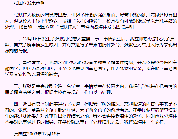 事发之后中戏方面的通知也下来了,对张默给出了勒定退学的处分。