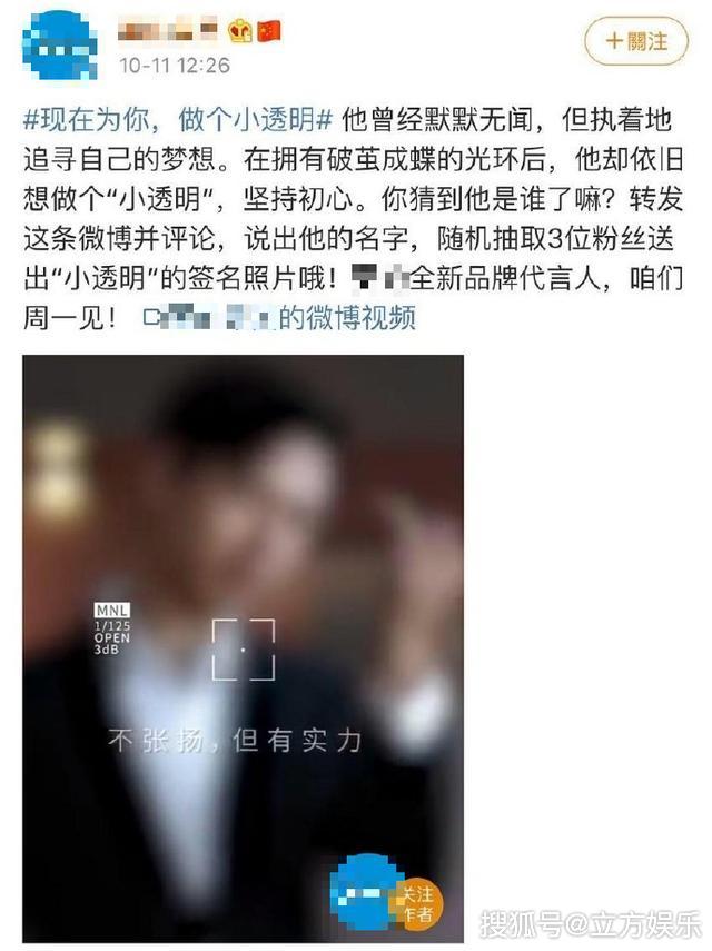 10月11日,某国民品牌官博放出一张新代言人的高糊照片,宣布将在周一公开此人身份。可惜人物轮廓太过明显,大家很快都看出来了,他就是近期因《亲爱的热爱的》爆红的李现。能够让李现代言,不仅说明李现的形象阳光正面,更是对他当下热度的一种肯定。