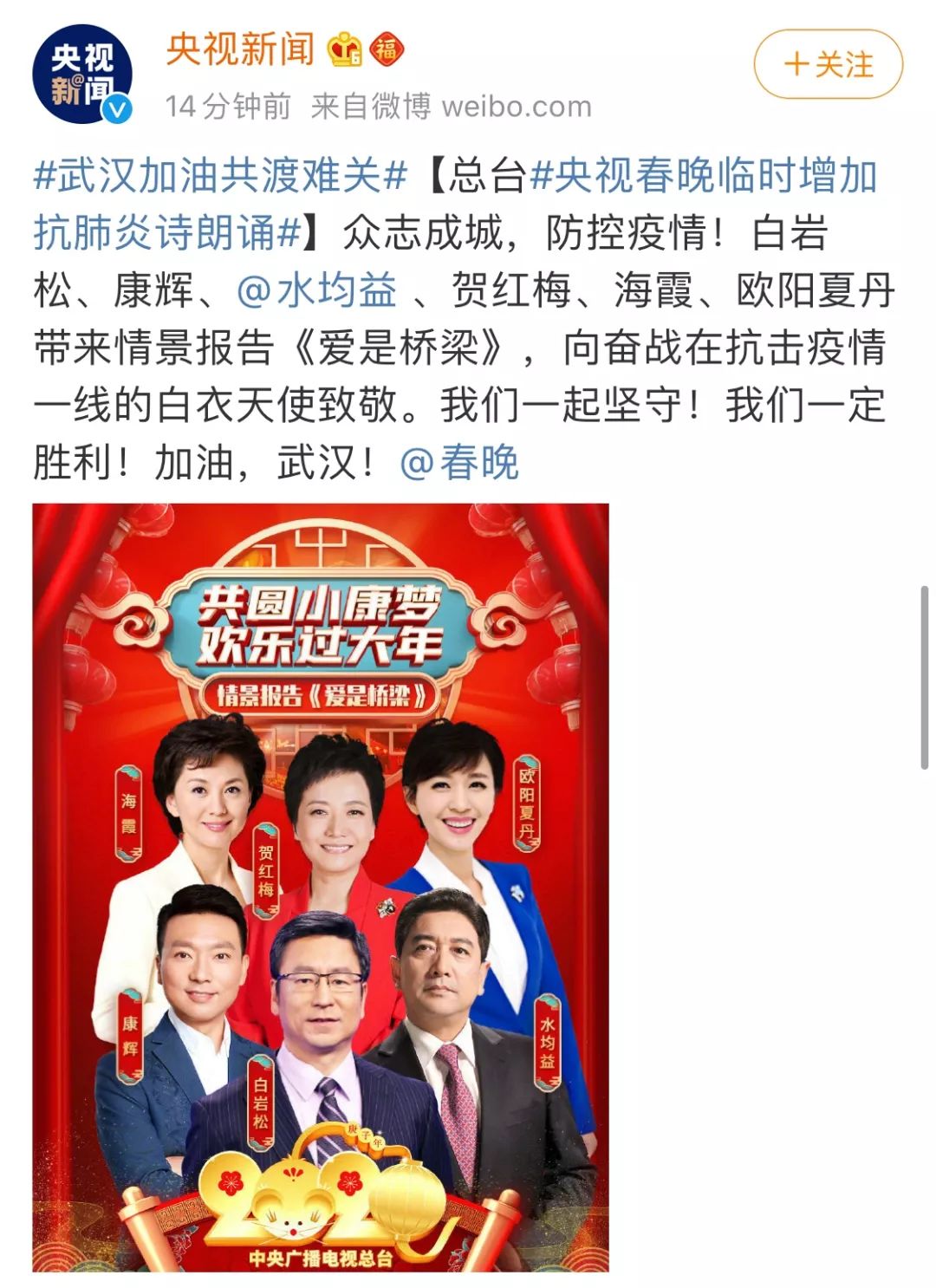 甚至,还临时增加了抗肺炎诗朗诵的节目,致敬白衣天使,鼓励国民共渡难关;