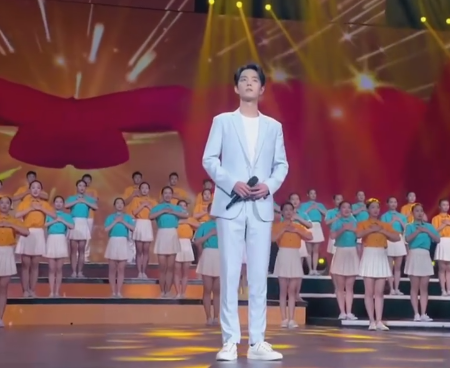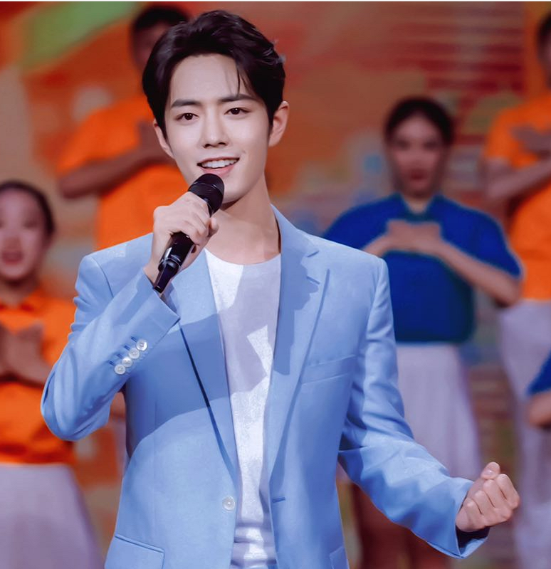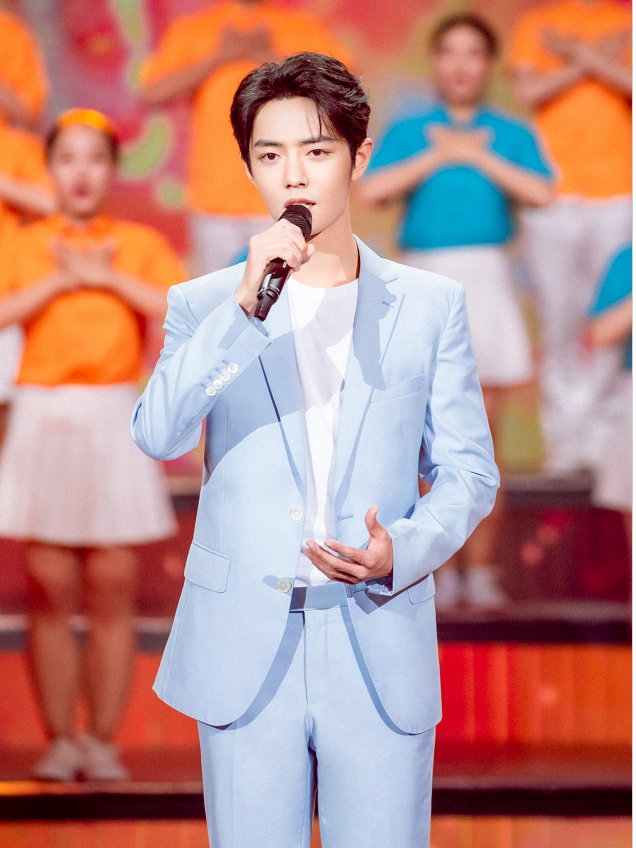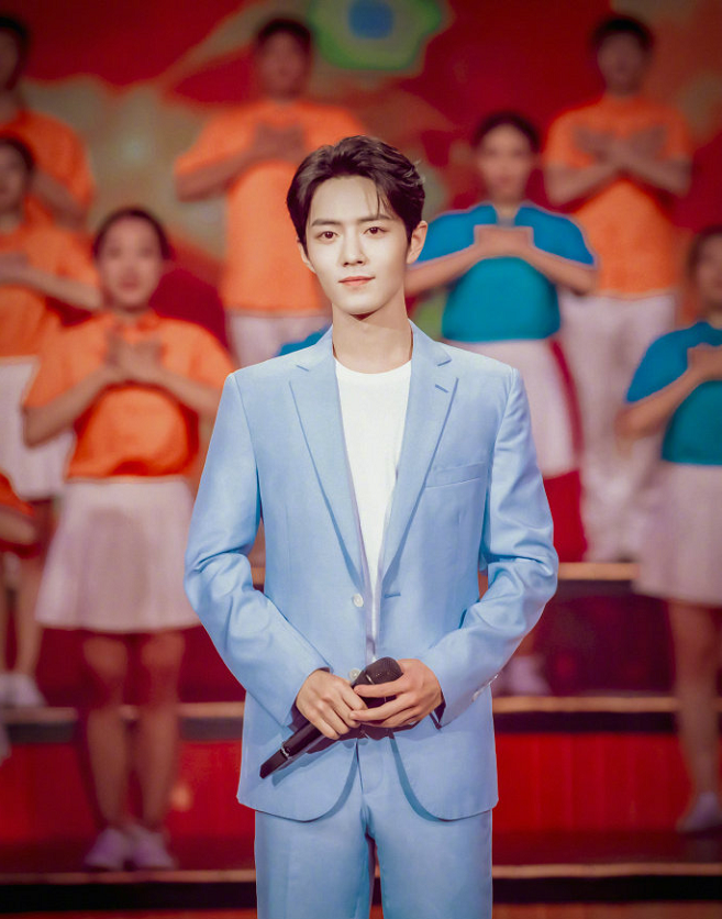 原标题:肖战穿蓝色西装内搭白T,深情演绎《我的中国心》,帅气又振