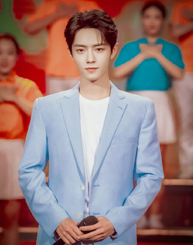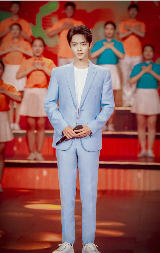 肖战这身浅蓝色的西装,而且还比较修身,展示出肖战的好身材和好气质,显得特别年轻、干净、清爽、帅气。而肖战的少年感那么强,穿浅蓝色的西装也合适不过了呢。衬得肌肤白皙,是蓝衣少年没错了。肯定又有不少迷弟迷妹被吸引了吧?