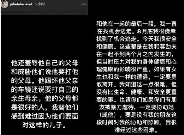 好吧,就算蒋劲夫自己喜欢和选择了,无怨无悔不管不顾,别人也干预不到。就在大家还在看衰或者适应蒋劲夫恋情的过程中,蒋劲夫突然就低调了,正当大家怀疑他失恋分手了的时候,前女友却爆出了蒋劲夫家暴丑闻,还晒出了照片和证据。一时间,蒋劲夫就被推到娱乐八卦圈舆论风口浪尖,被质疑和吐槽。