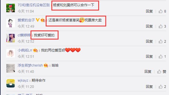 不少网友留言评论,一些网友说道,“杨紫和刘昊然可以合作一下”、“还是喜欢杨紫崽崽笑,祝票房大卖”、“刘昊然笑的好喜庆”,网友们对于这两位爱豆都表示期待两人合作,看来还有不少网友嗑他俩的CP啊,也有网友说刘昊然笑的喜庆,很是可爱。你们觉得呢?