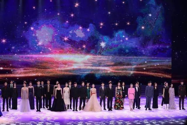 在开幕式第三篇章里,易烊千玺、王俊凯、周冬雨再度登上舞台,“星辰大海”计划的全部32位青年演员合唱主题歌《星辰大海》。