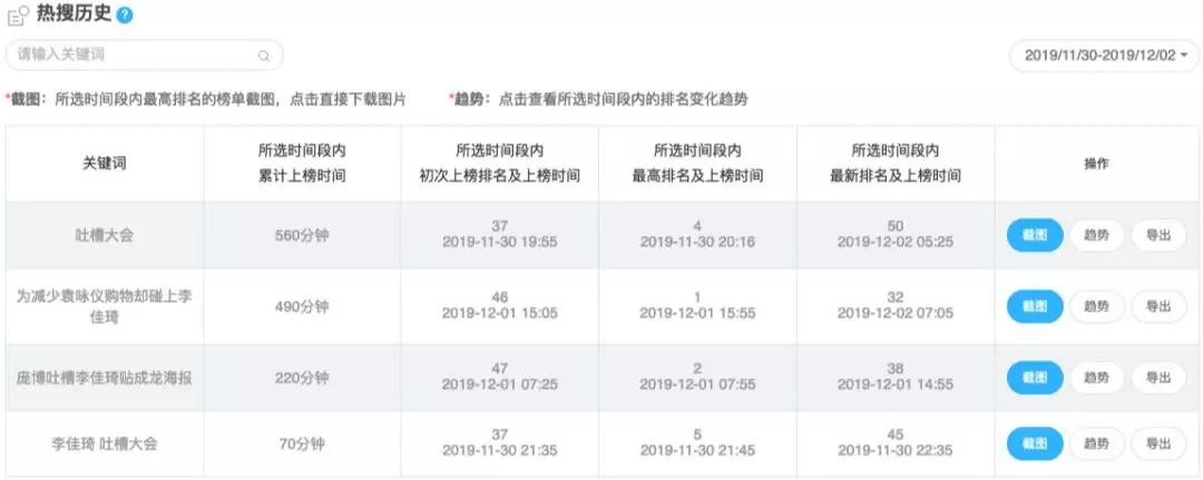 从结果来看,无疑也是好的。如上述所说,官宣加盟之时就曾将《吐槽大会》带上热搜。根据云合数据显示,11月30日第一期节目上线后至今,《吐槽大会》四条热搜中,有三条带着李佳琦的名字。在某种程度上,李佳琦确实带动了《吐槽大会》。