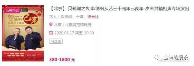 郭德纲的封箱演出票价定在380-1800之间。