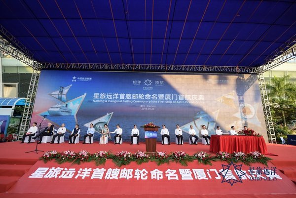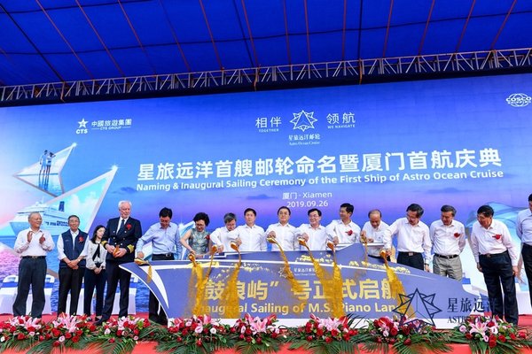 厦门2019年9月30日 -- 9月26日,由中国旅游集团和中国远洋海运集团共同出资设立的“星旅远洋邮轮”旗下“鼓浪屿”号在母港厦门举办了首航典礼暨命名仪式,标志着中国第一艘国资豪华邮轮正式亮相中国市场。