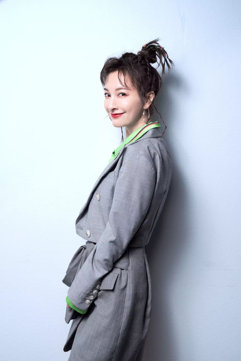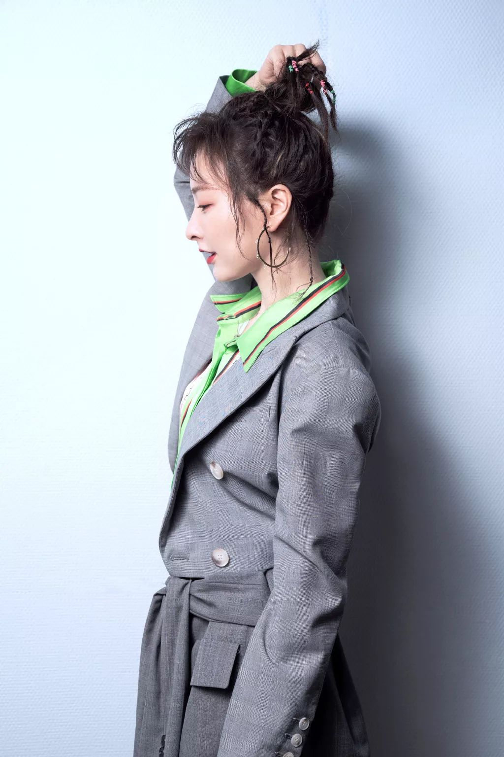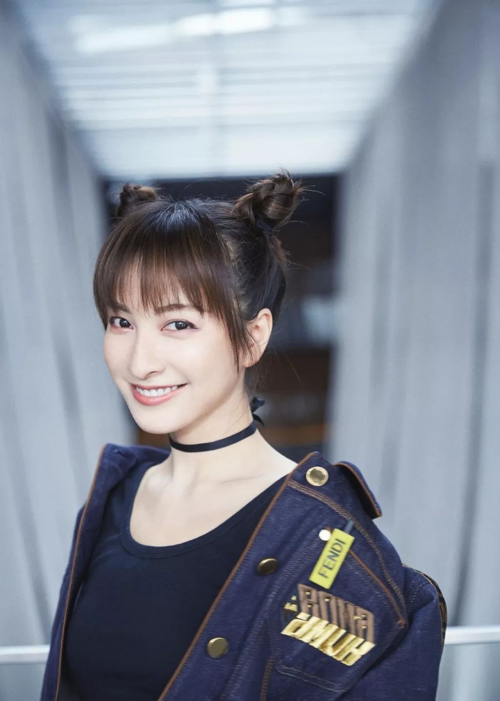 鬼马俏皮双丸子头搭配潮酷牛仔外套,昕姐真的是各种造型都能轻松驾驭。