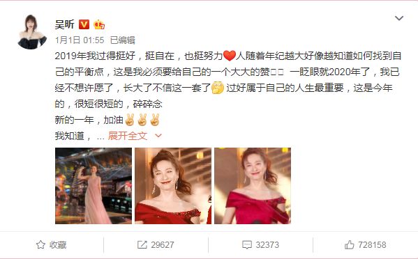 原标题:吴昕新年状态佳,发文称:我会一直快乐自在的