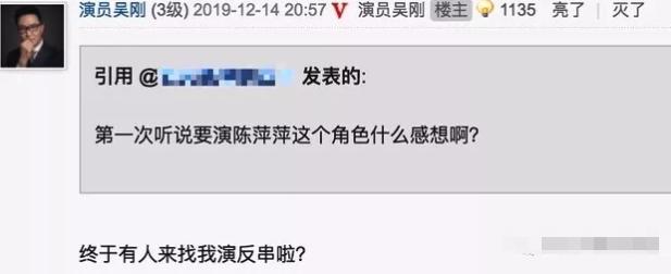 这个采访一曝光之后,吴刚也马上被网友们调侃起来,十分欢乐。同时他还不忘在微博回应话题,并晒出一张"愤愤不萍"的表情包,表示自己当初搞错了剧组的用意也是无奈的,毕竟"陈萍萍"的名字确实很想女人。