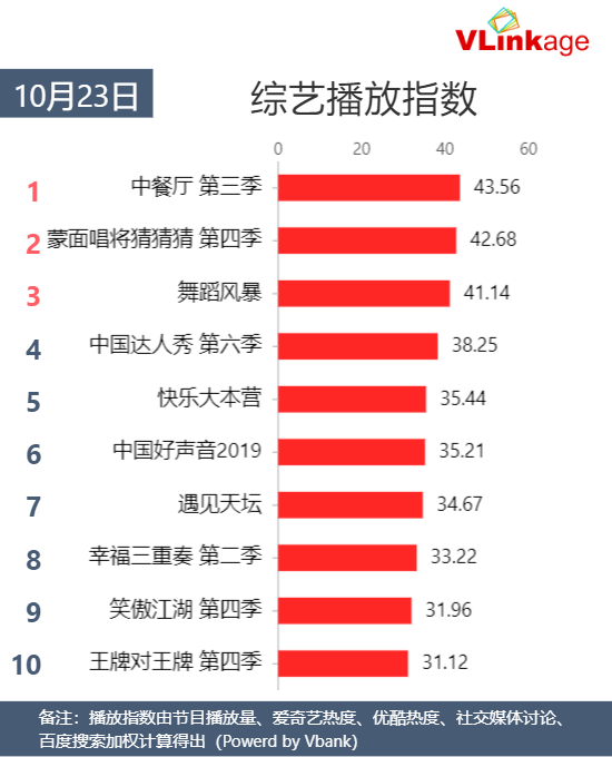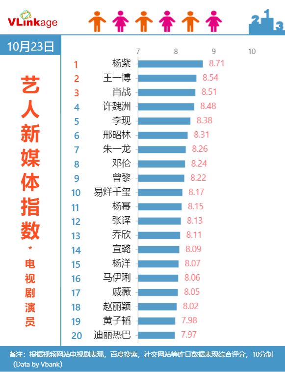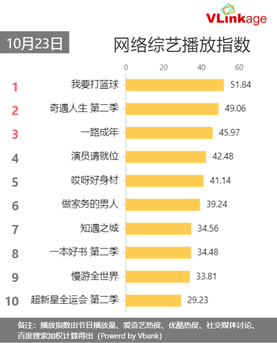 原标题:Vlinkage榜单 | 10月23日网播数据及艺人新媒体